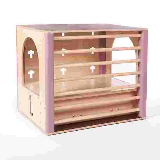 The Cube Sports U3 “Emmi” cube is an extremely robust element that opens up a whole new world of design possibilities thanks to its many cutouts and attachment options. Be it beams, climbing nets or slides, there’s no limit to the possible combinations. The side walls of the Cube Sports U3 “Emmi” cube are made of birch plywood. The corner strips are made of solid beech and glued as well as screwed to the sides. The base’s underside features non-slip rubber for stability. Particularly practical: the cube has a built-in transport device that makes moving it around a breeze.