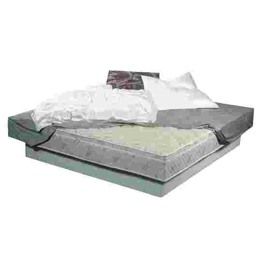 The set includes a ceramic heating system. The waterbed mattress comes with an anti-allergic Teddy pile cover, which has a strong zip meaning that it can be removed to aid cleaning. When filled to a height of 21 cm, the medium setting will deliver all the benefits a waterbed has to offer. The white wooden pedestal on which the mattress lies can be set up with very little effort. The total height of the waterbed is approx. 50 cm.