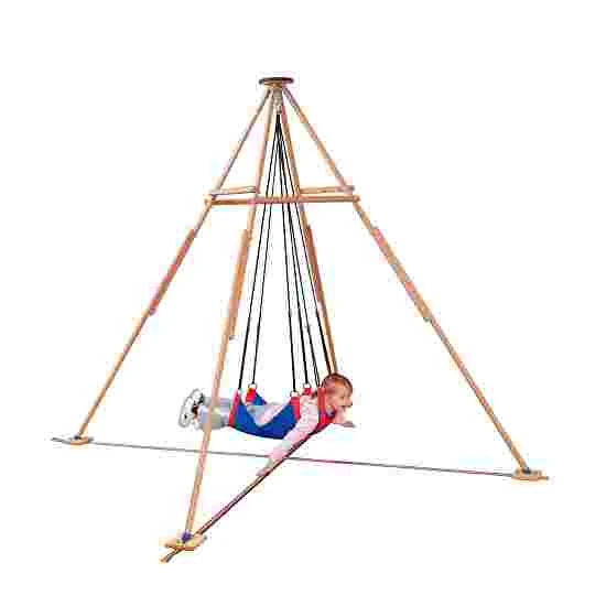The Pedalo “Pyramido” is made from solid beech and has been treated with flaxseed oil, so it can also be used outside. The base panels have rubber underneath for security when swinging. The height of the frame and standing area can be adjusted. Hammock, swing and parachute – the frame has a variety of uses. They must, however, be ordered separately.