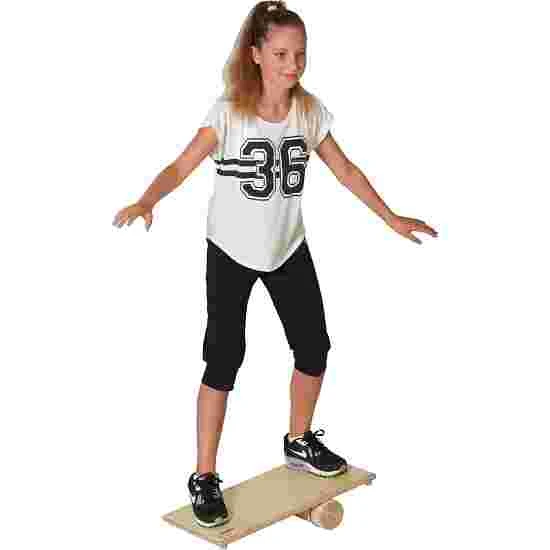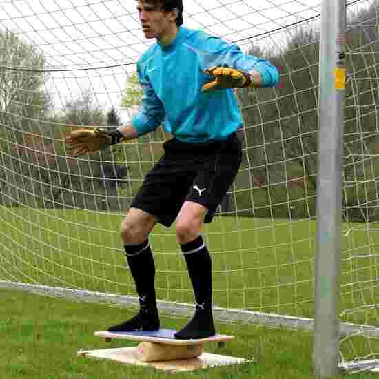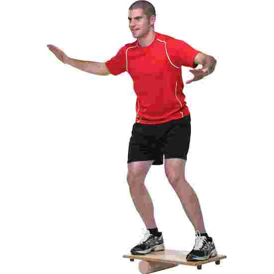 The Pedalo Rola-Bola “Sport” balance board is a training aid used to perfect your sense of balance and coordination. Exercise with your legs apart or with one foot in front of the other. The training aid consists of a solid wooden roller and a balance board made from extremely sturdy ash multiplex plywood. The roller has a rubber anti-slip ring on each end to let you use the balance board on smooth surfaces. Beginners are advised to practise on a carpet or rug because it will prevent you from slipping and slow your movements down. The anti-slip shaft included can be attached to the upper side of the roller board as an option. Stickers guarantee secure positioning. The board contains holes all the way round the edge for attaching resistance bands or plugging foot rockers to. 2 rubber pads are fixed to each end of the board’s underside to prevent the board from rolling off of the roller.