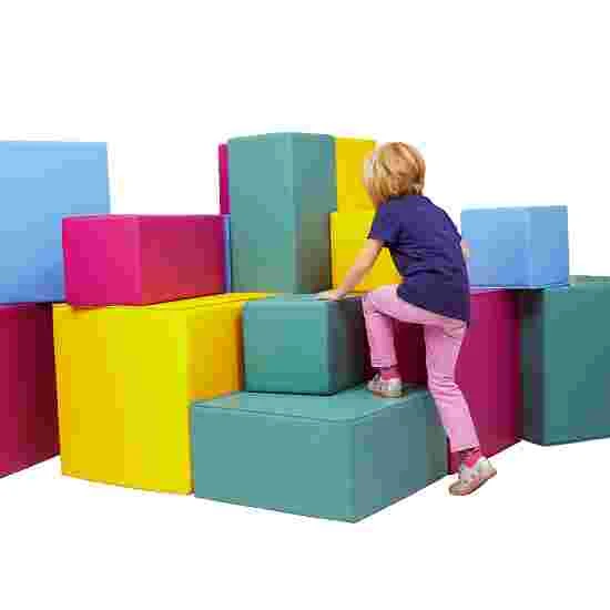 Impress children with imaginative and creative play with the Sport-Thieme giant cube – be it in nurseries, preschools, in children’s sport or in therapy. The giant cube with its 16 colourful cubes and cuboids have a highly stimulative nature. The individual blocks are made from durable foam (25/50 kg/m³). The skin-friendly, soft material cover (100% polychloride) is easy to clean.