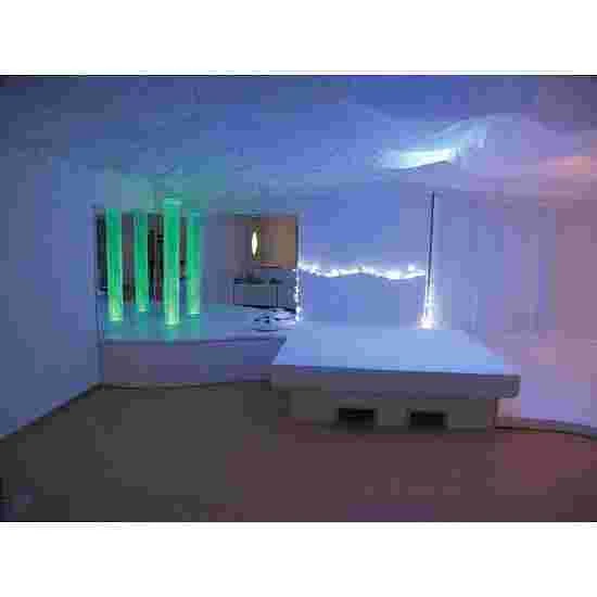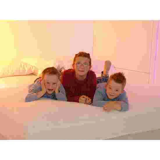 The Tasso waterbed mattress consists of a completely filled core of water, which has 2 cm of reinforced seams and, when filled, is 21 cm high. A padded safety reservoir with a soft, shape-retaining sitting edge protects the core from damage. The mattress is also covered with fleece pile, suitable for allergy sufferers. This is removable and can be washed at 90°C.